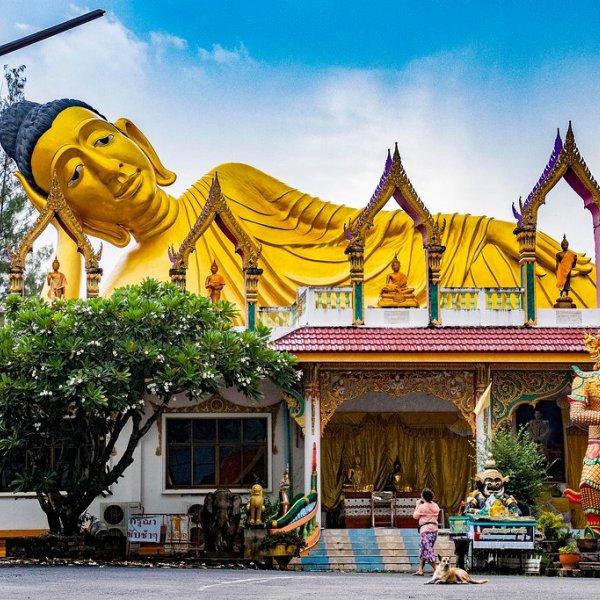 Буддийский храм Wat Sri Sunthon носит имя одной из двух сестер, возглавивших восстание местных жителей против бирманцев. На вершине главного здания лежит 30-ти метровая статуя Спящего Будды. Перед входом стоят еще 9 статуй меньшего размера. Хоть занимаемая комплексом площадь невелика, его территория невероятно красочна и живописна. На входе посетителей встречает каменный монах и изваяния множества разновидностей животных.