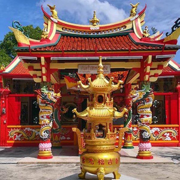 Основанный около 100 лет назад, Hok Nguan Kung Shrine является религиозным центром проживающих на острове Пхукет этнических китайцев. Главным ритуальным объектом храма является воссозданный из сандалового дерева статуя божества Ju Su Kong. Черный с головы до ног памятник почитаемого божества дополняют изображенные на стенах храма картины, посвященные сюжетам древнего трактата «24 образца сыновней почтительности».