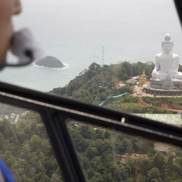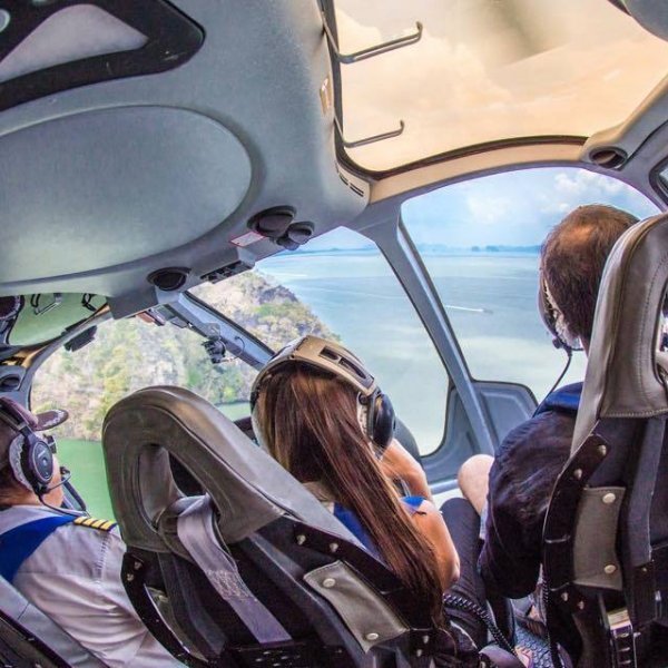 Skydance Heliport - огромные мангровые деревья - креветочные фермы - великолепный известняк - пролет над, через и вокруг драматических скальных образований - уединенные пляжи - остров Джеймса Бонда - прибрежные джунгли - плавучая мусульманская деревня - национальный парк Най Тон - Банг Тао 5-звездочная Лагуна - Миля миллионеров, Виллы мечты Пхукета - Город грехов Патонг - Пляж Ката и Карон - Драматический мыс Пром Тэп: самая южная точка Пхукета - кружит вокруг 46-метрового Большого Будды - знаменитый храм Чалонг - Красная гора: бывший оловянный рудник превратился в гольф курс - Skydance Heliport