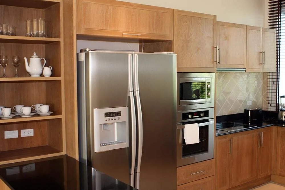 Апартаменты располагают тремя спальнями, тремя ванными комнатами, полностью укомплектованной кухней, террасой и балконом. Главная спальня располагает отдельной террасой, с которой открывается потрясающий вид на сад, бассейны, горы и океан. Остальные спальни имеют собственный балкон. Во всех спальнях качественная встроенная