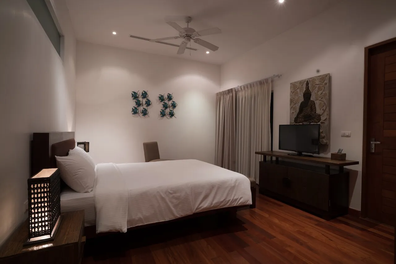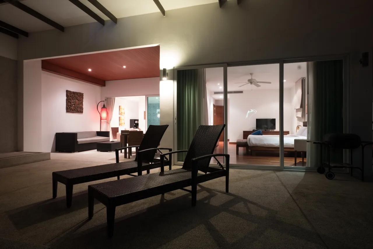 Апартаменты располагают тремя спальнями, гостиной и полностью укомплектованной кухней. Из гостиной и главной спальни есть выход на террасу с бассейном и прекрасным видом на Андаманское море.