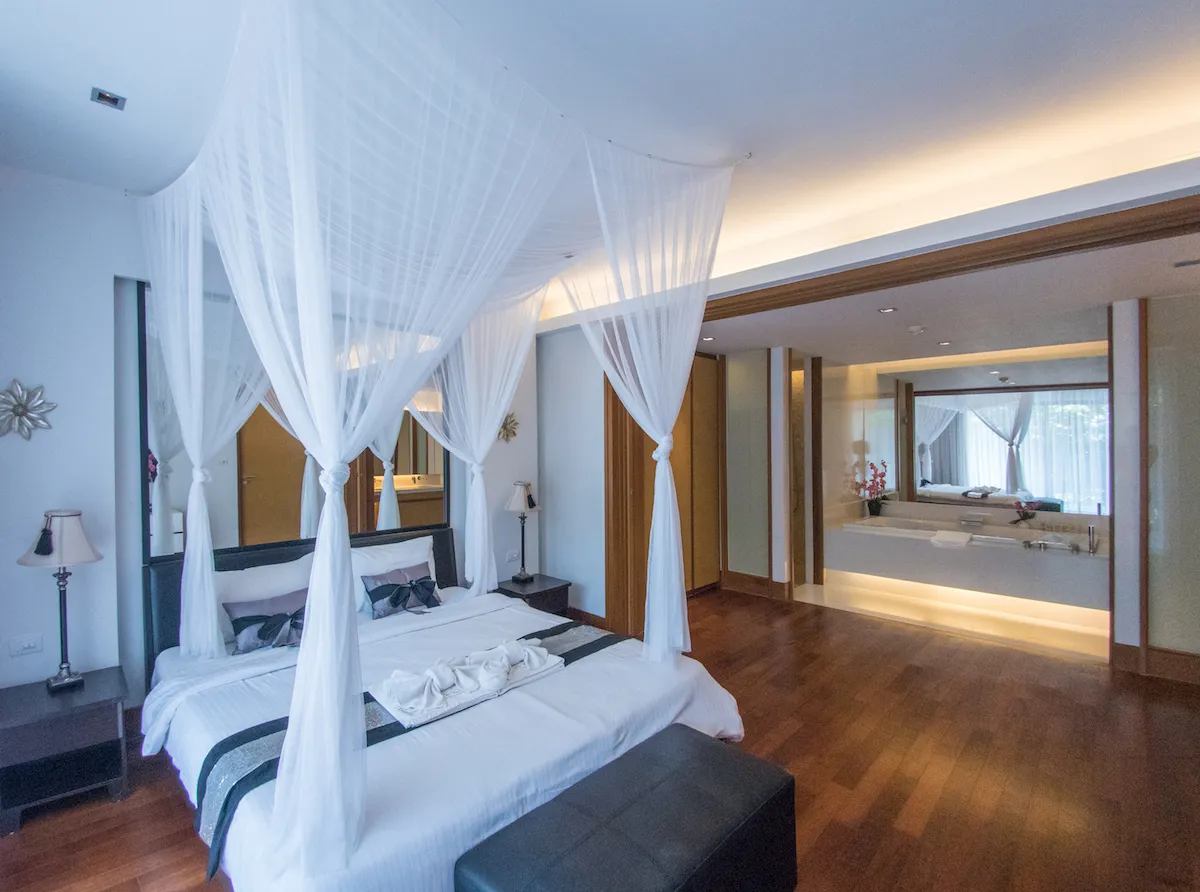 Апартаменты площадью 220 м2 расположены на первом этаже в проекте Pearl of Naithon и имеют собственную террасу с садем и выходом к бассейну. апартаменты состоят из просторной гостиной с большой оборудованной террассой для отдыха, полностью укомплектованной кухней с островом и барными стульями, столовой зоны на 6 персон. Главная спальня с большой кроватью king-size, сейфом, кондиционером и огромной гардеробной имеет собственную ванную комнату с ванной и душевой. Вторая и третья спальня тоже оборудованы двухспальными кроватями и каждая их них имеет собственную душевую и туалет.