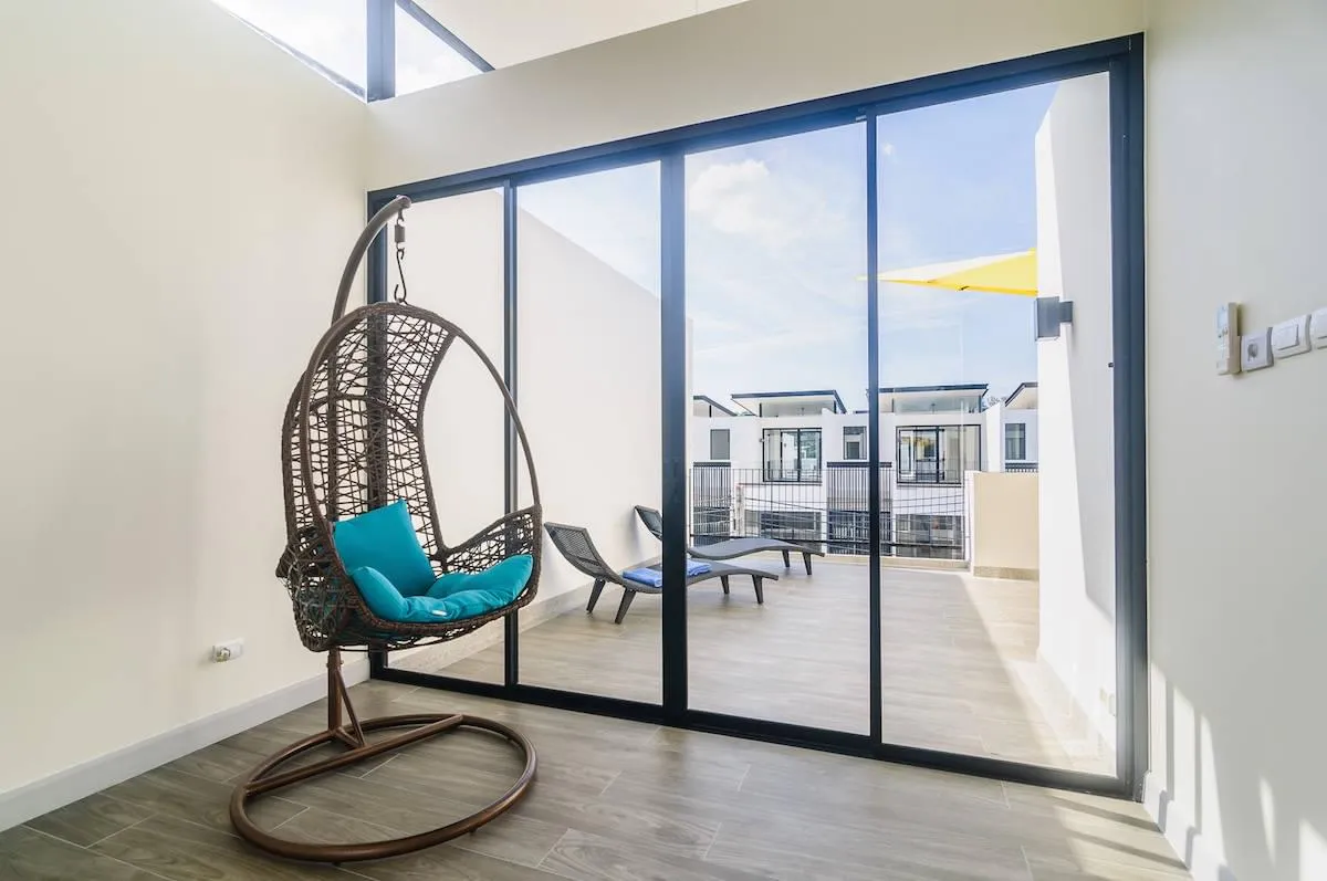 Таунхаус в Лагуна Парке - это идеально подходящий для небольшой семьи дом с 2 спальнями и 4 санузлами, частной парковкой и небольшим участком земли. На первом этаже таунхауса - гостиная и полностью оборудованная кухня. На втором этаже - две просторных спальни, каждая со своей ванной комнатой. На верхнем этаже – третья комната, которая буквально утопает в естественном свете, благодаря стеклянным окнам от пола до потолка. Также на третьем этаже расположена просторная открытая терраса, где так приятно отдохнуть после насыщенного впечатлениями дня.