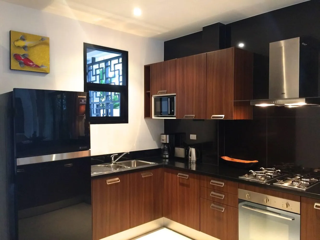 Элитная вилла с частным бассейном выполнена в тайском стиле в окружении тропического сада. Вилла оборудована всем необходимым для удобного отдыха. К услугам гостей три спальни, гостиная и кухня. Во всех спальнях установлены кровати размера king-size, а также имеется отдельная ванная комната. На территории просторная терраса и бассейн.