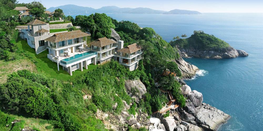 Впечатляющая вилла в современном азиатском стиле, расположенная на скале над морем. И хоть каменистый спуск к воде не позволяет купаться непосредственно у подножия скалы, дизайнеры виллы создали искусственный частный пляж над водой.