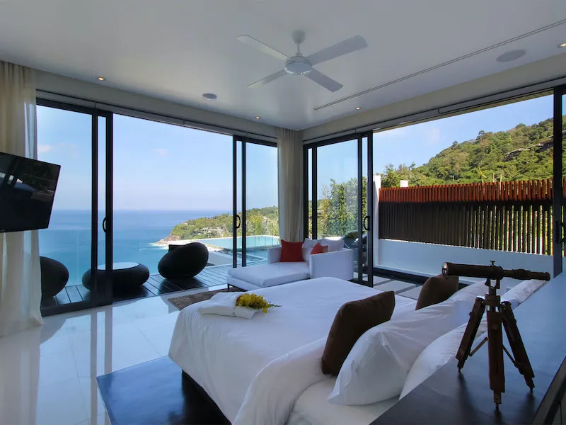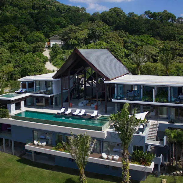 Высоко над океаном на западном побережье Пхукета изо всех номеров потрясающей виллы с восемью спальнями открывается захватывающий дух вид. Захватывающий вход на виллу, прохладный 19-метровый пейзажный бассейн, современный домашний кинотеатр и бар с бильярдным столом, хорошо оборудованный тренажерный зал с гидромассажной кроватью также захватят дух. Все восемь просторных спален выходят на стеклянные балконы с видом на океан, а в главном люксе есть сверкающее джакузи. Эта вилла очень подходит для корпоративных отступлений, особых