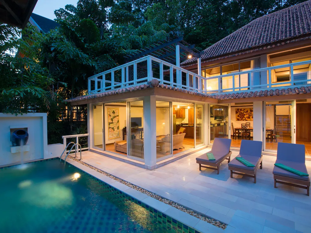 Прекрасный и уютный дом для отдыха над пляжем Ката Ной на Пхукете, с великолепным видом на море и холмы. К вашим услугам прекрасная сала в тайском стиле и заманчивый пейзажный бассейн для открытого блаженства. Внутренняя гостиная открытой планировки сочетает в себе гостиную и современную кухню, к которой примыкает столовая с окнами от пола до потолка для наслаждения тропическим бризом и бесконечными перспективами. Прекрасное убежище на склоне холма для семьи с детьми. Вилла построена на двух уровнях и является частью эксклюзивной