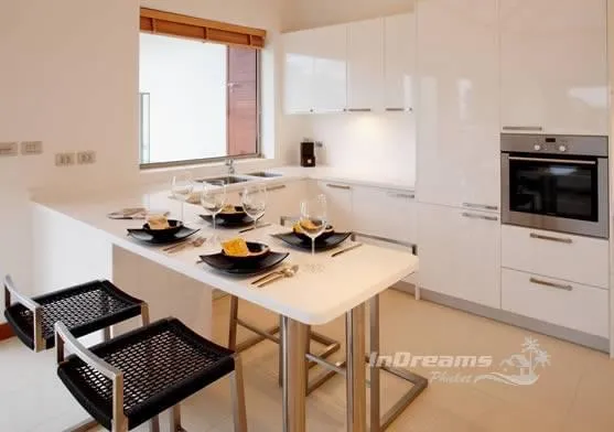 Четырехспальная вилла расположена в самой высокой точке комплекса, что позволяет любоваться великолепными видами на пляж Ката. Две большие спальные комнаты, открытого плана кухня и гостиная выходят к бассейну и террасе. Великолепный инфинити бассейн с завораживающим эффектом бесконечного края. Две гостевые спальные комнаты расположены в нижней