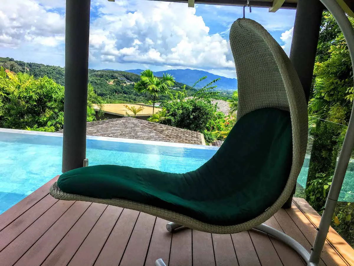 Посмотрели фотографии? Перевели дух? Не правда ли потрясающе? Но, к сожалению, ни один фотоаппарат в мире, даже самый профессиональный, не сможет передать все буйство красок тропической зелени и бирюзового океана. Благодаря панорамным, стеклянным окнам этот вид будет на протяжении всего отдыха, а освещение виллы будет меняться от спокойнов тонов с утра до насыщенных, ярких, сочных красок заката по вечерам.