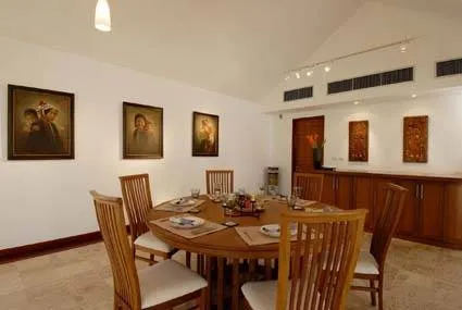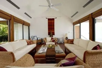 Вилла выполнена в современном азиатском стиле и идеально подходит для безмятежного комфортного проживания. Оригинально выполненная терраса является частью жилого пространства. В доме четыре спальные комнаты, каждая имеет собственную гардеробную и санузел. Вилла спроектирована таким образом, что каждая комната располагает шикарным видом на бассейн или на восхитительный тропический сад, с прямым выходом к нему. Также в доме имеется дополнительная комната для горничной и специальная прачечная комната. Все комнаты оборудованы потолочными вентиляторами и канальной системой кондиционирования. Полностью оборудованная в соответствии с европейским стандартом кухня имеет все необходимое для приготовления Ваших любимых блюд. Уютная гостиная оснащена удобной мебелью и имеет плазменный телевизор со спутниковым телевидением. В столовой круглый обеденный стол на шесть персон.