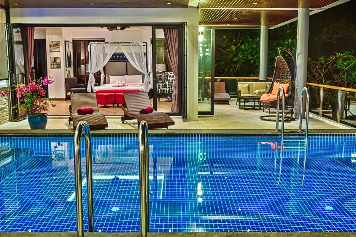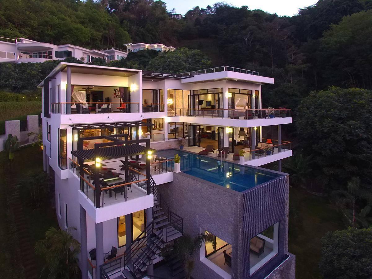 Потрясающая шестиспальная вилла с захватывающим видом на океан, долину и район Бангтао. Вилла находится в 70 метрах над уровнем моря, на склоне холма и в окружении пышного, тропического леса.