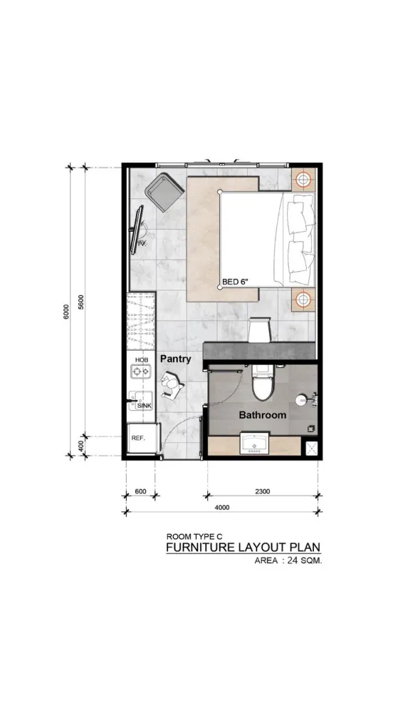 Проект состоит из: 60 вилл с собственным бассейном и парковкой и 7-и этажное здание с квартирами от 24 кВ.м (всего 120). На 3-х этажах здания будет 24