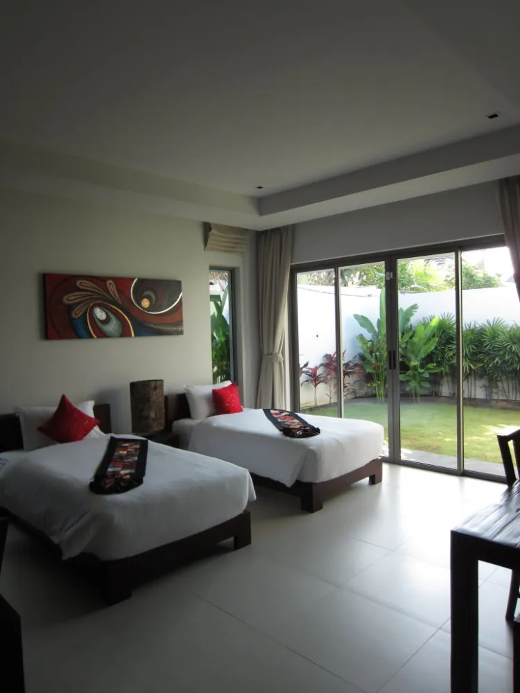 Anchan Villa - шикарная вилла с тремя спальнями и уникальным дизайном. Вилла оформлена в современном балийском стиле и понравится всем любителям модерна. Огромные панорамные окна делают комнаты светлыми и позволяют любоваться красотой тропической природы. Стильная, качественная мебель, выполненная из природных материалов. Сводчатые потолки, авторские предметы интерьера, пол из тикового дерева - в каждом уголке прослеживается изысканный вкус дизайнеров и