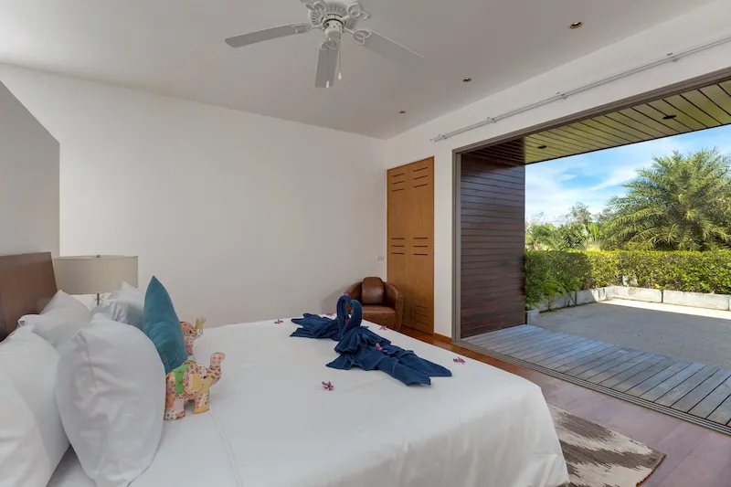 Виллы выполнены по самым высоким западным стандартам качества. Полы из тикового дерева, раздвижные стеклянные двери и окна, полностью оборудованная современная кухня в нескольких цветовых решениях, свежий и минималистичный дизайн интерьера. Просторная вилла на щедром земельном участке позволяет расслабиться и отдохнуть в полной безопасности.