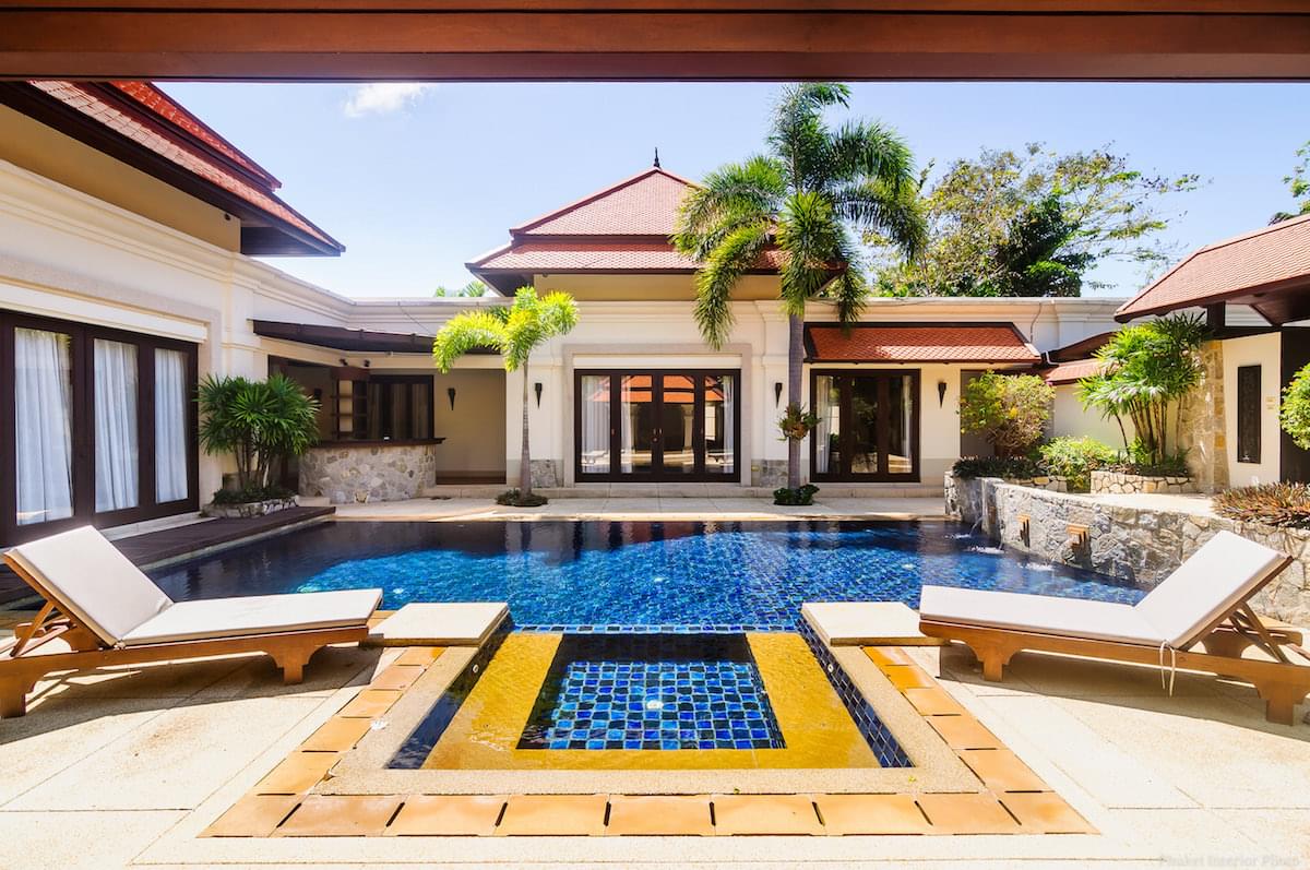 Saitaan - одна из крупнейших резиденций Пхукета. Проект состоит из 48 роскошных вилл в балинезийском стиле с крышами из красной черепицы, площадью от 450 м2, каждая от 3 до 5 спален. Весь проект выполнен в едином стиле, типичная планировка виллы - это основное здание Г-образной формы, в котором расположены гостиная, кухня, несколько изолированных друг от друга спален со своими ванными комнатами и комната горничной. В отдельном павильоне расположена гостевая спальня
