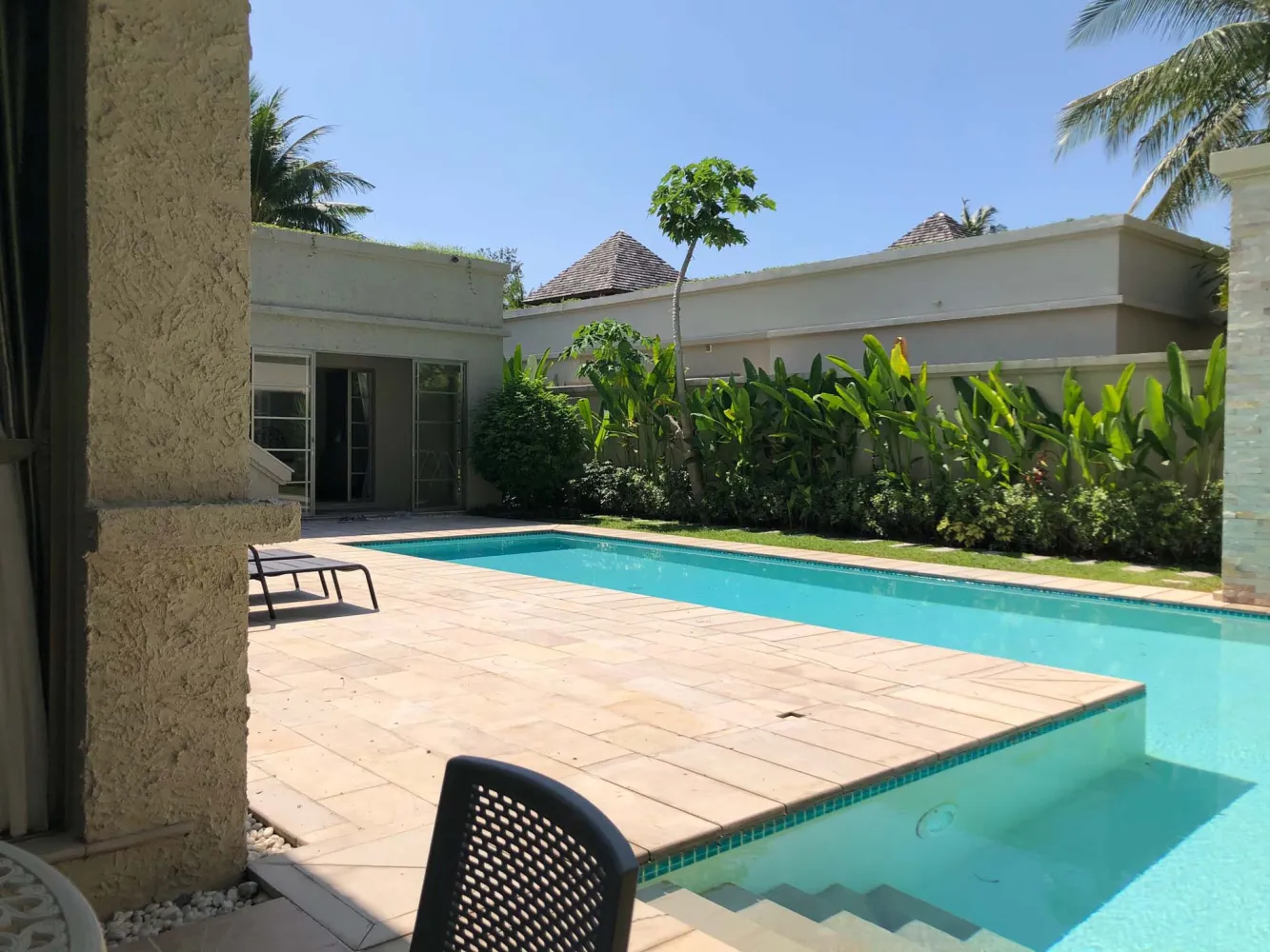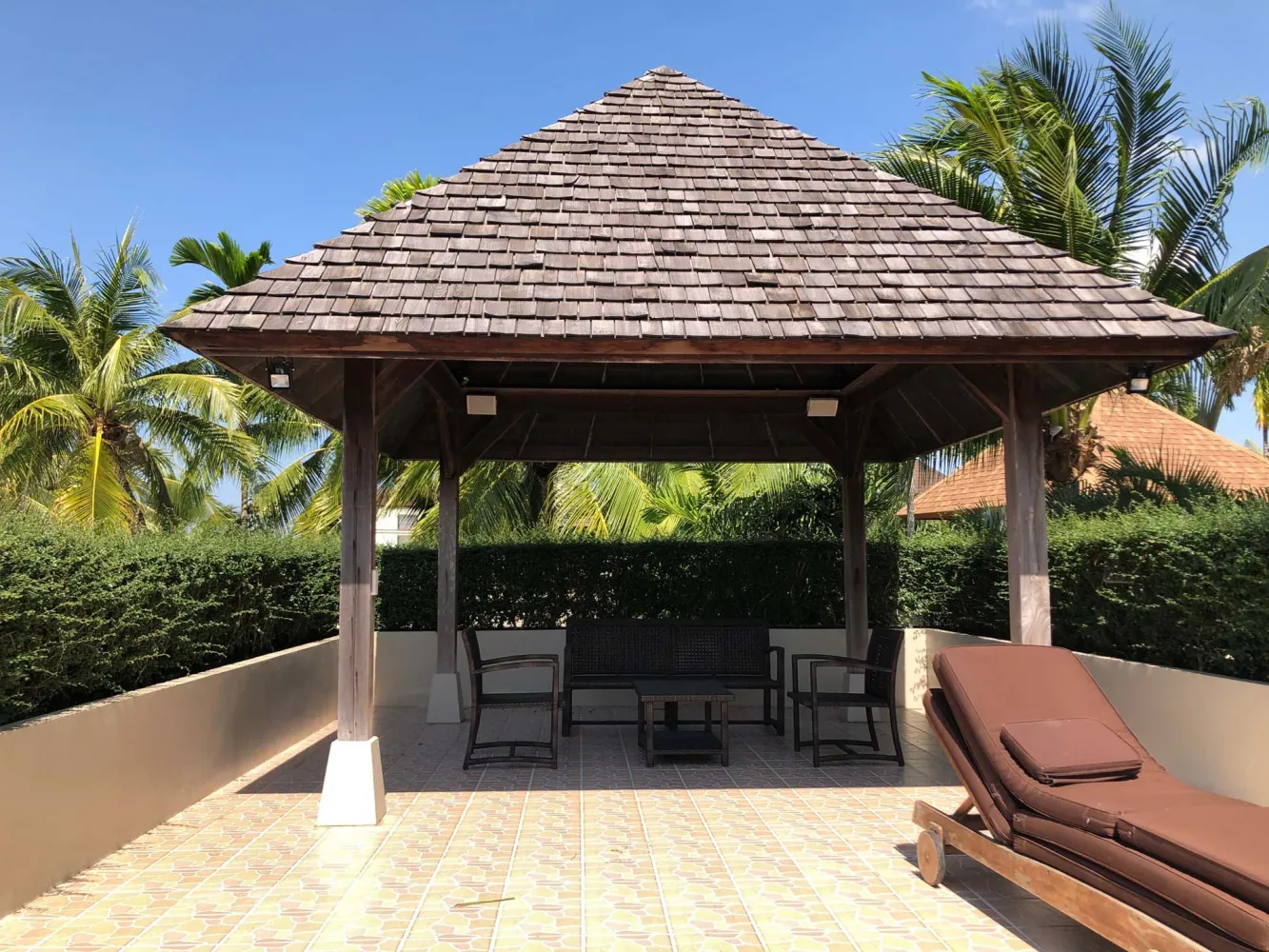 Вилла площадью 350 кв.м находится на просторном участке 460 кв.м и окружена красивым, ландшафтным садом. Рядом с бассейном имеется BBQ