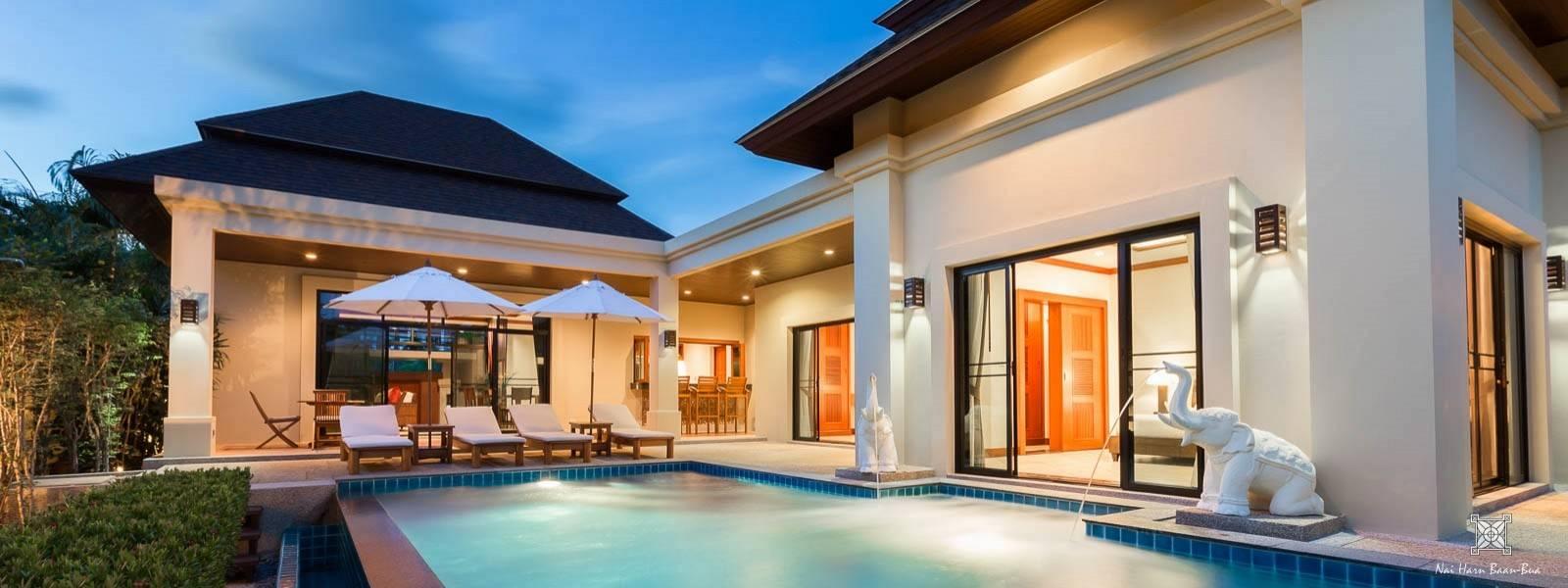 Baan Bua - одна из крупнейших резиденций класса люкс юге Пхукета. Проект состоит из 59 роскошных вилл в тайско- балийском стиле, площадью от 150 м2, каждая от 3 до 5 спален. Весь проект выполнен в едином стиле. Несколько планировок виллы в зависимости от количества спален. Основное здание П-образной формы, в котором расположены гостиная совмещенная с кухней, несколько изолированных друг от друга спален со своими ванными комнатами. В центре большой плавательный