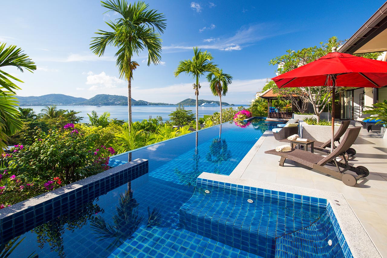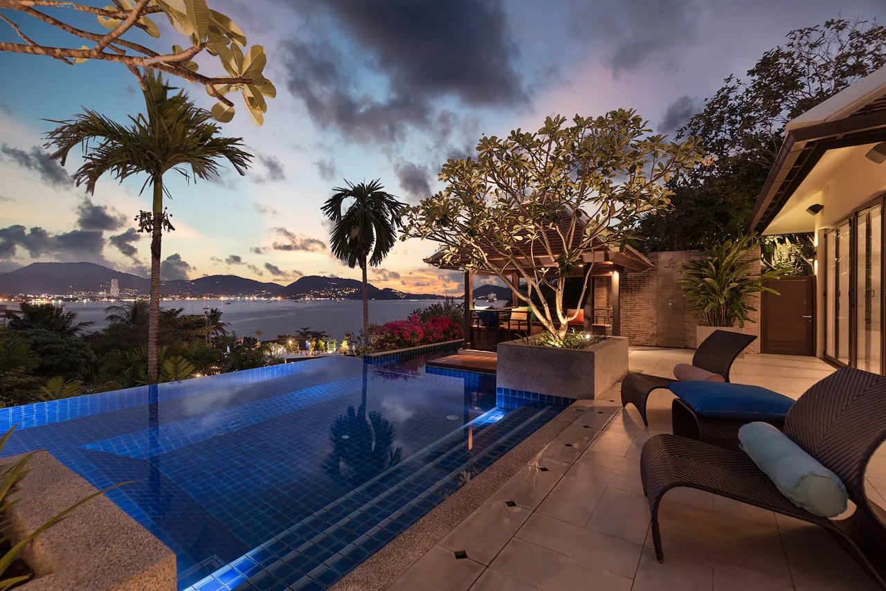 Уникальная резиденция с панорамным видом на океан и горы, из которой открывается вид на спокойное синее море залива Патонг.